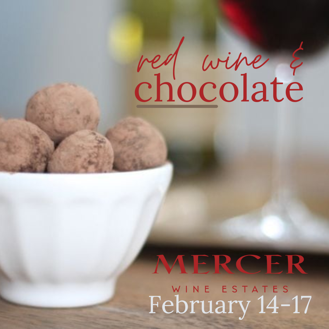 Join us for Red Wine & Chocolate in Prosser all weekend. Enjoy four Mercer Wines paired with four handmade chocolate truffles from Sweet Shop USA. Tickets are $25 and include wine (dry white and red wines) and chocolates.